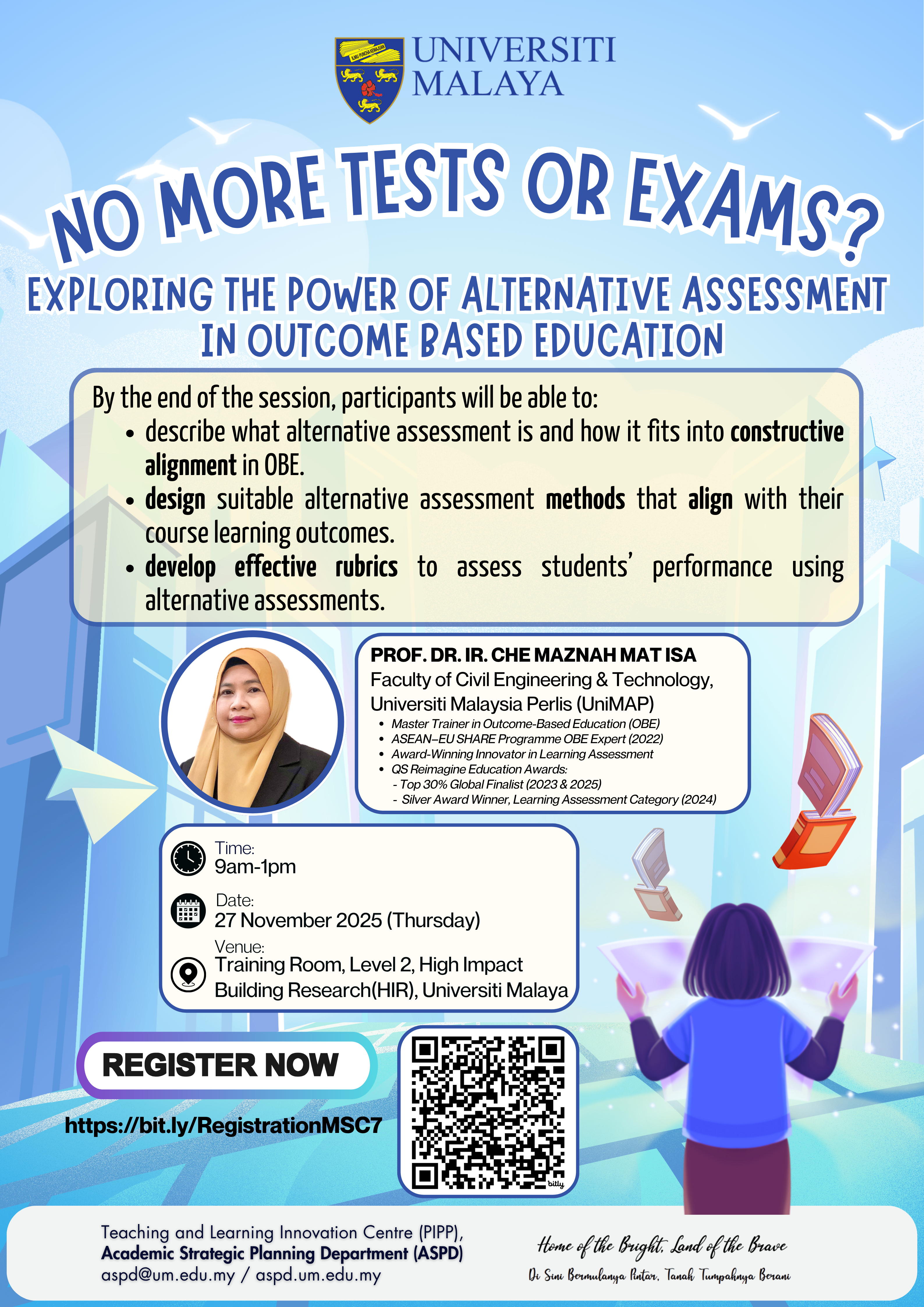 This calendar provides a schedule of training sessions, workshops, and professional development programmes organized under the Academic Strategic Planning Division (ASPD), Universiti Malaya. It serves as a reference for academic and administrative staff to stay informed about upcoming ASPD capacity-building initiatives.